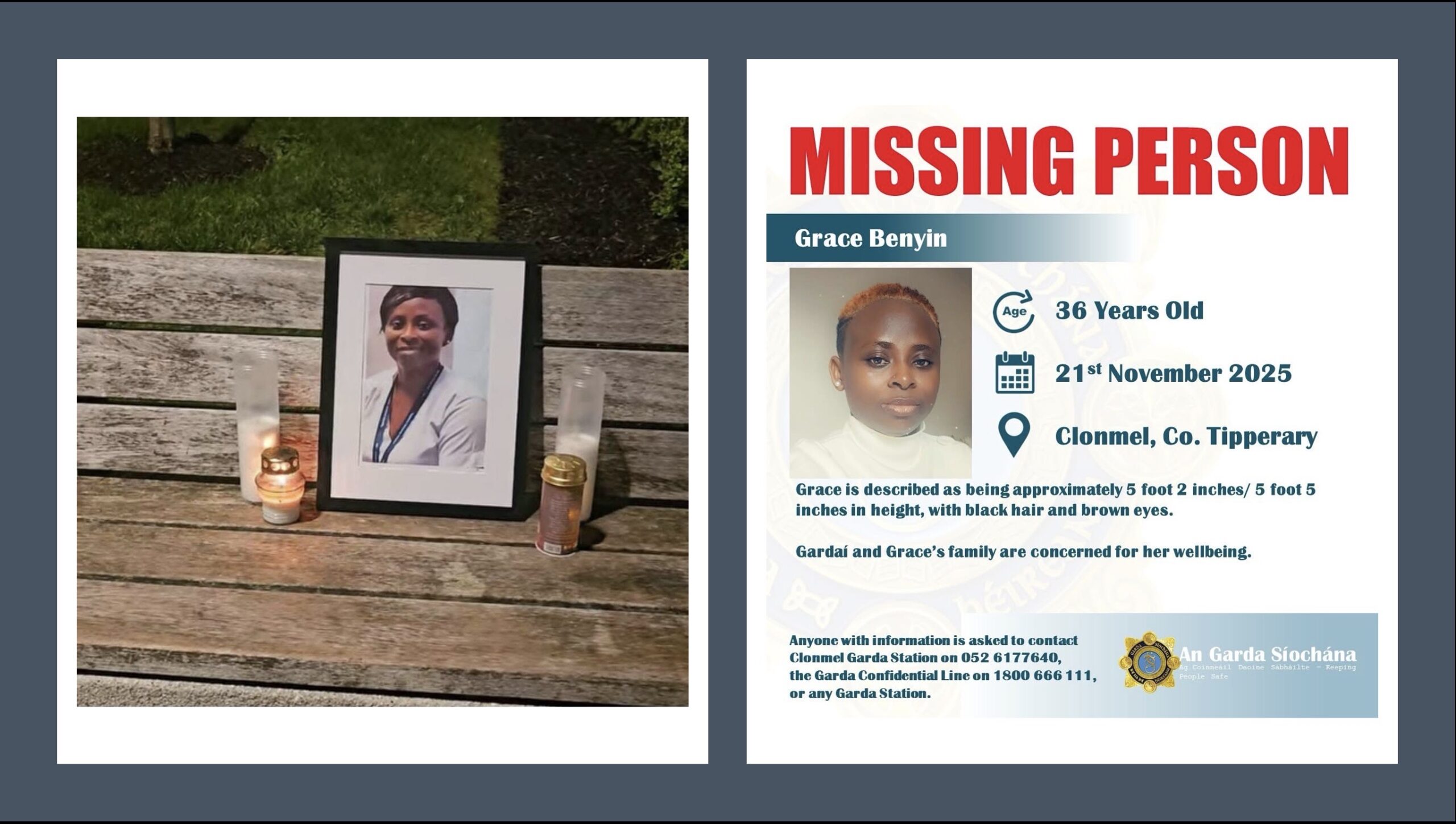 Gardaí renew appeal to trace missing midwife Grace Benyin (36) from Clonmel